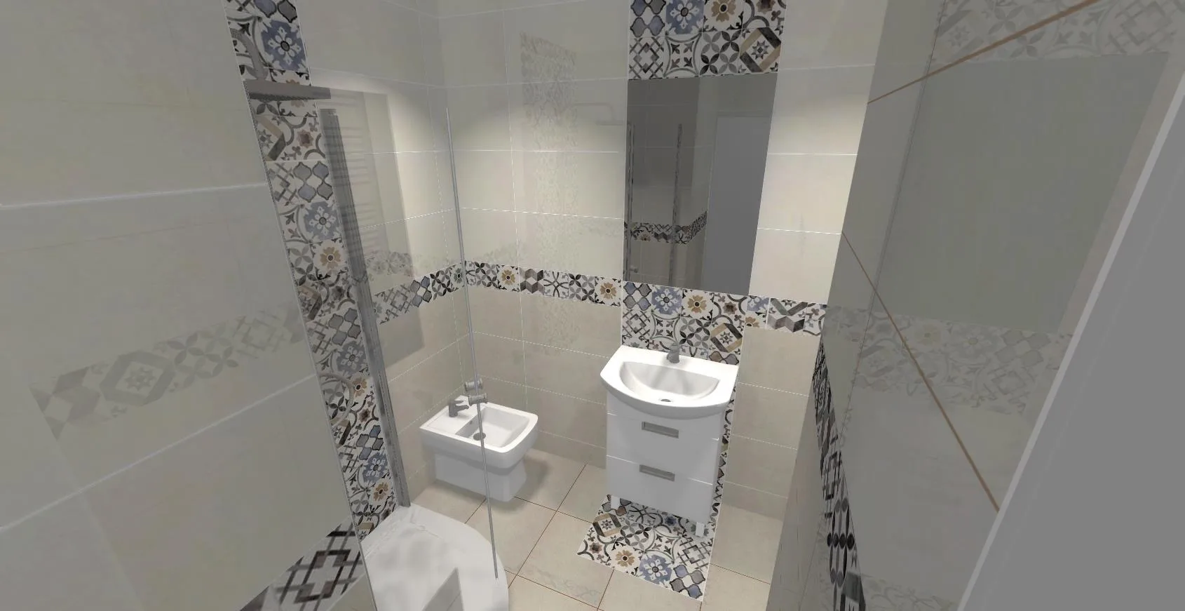 Plytki, kabiny prysznicowe walk-in, armatura. Nowoczesne wzory geometryczne, klasyczne beze, minimalistyczna biel.